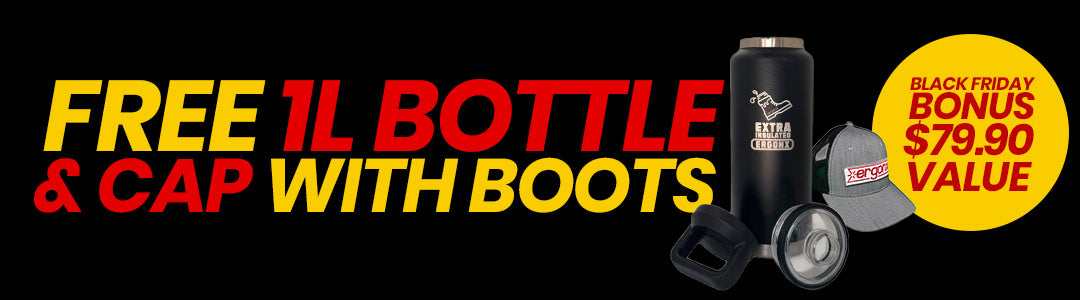 Ergonx Black Lace Up Safety Boots + 6 Socks + 1L Bottle & Cap Bundle