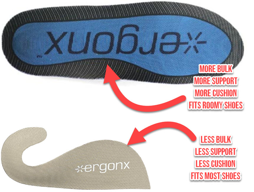 Ergonx Ultrasoft insoles provide excellent arch support. By raising the arch and limiting overpronation, they help reduce strain on the feet, particularly the ligaments, joints, and muscles on the bottom side of the foot.