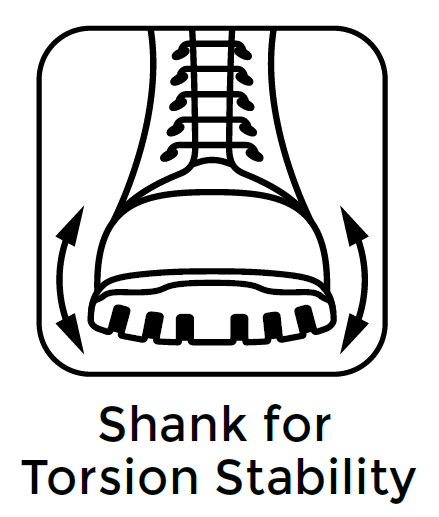 We have modernized the traditional steel shank by changing the material to polypropylene to make it airport friendly and lighter. The shank helps to add stiffness to the boot which helps to reduce strain over the middle of the foot and prevent pain. Uneven ground can be difficult to work on, so when working on rough or uneven job sites it is best to have a more rigid boot that works with the natural movements of your feet. The embedded shank adds stiffness only allowing bending where your foot bends.