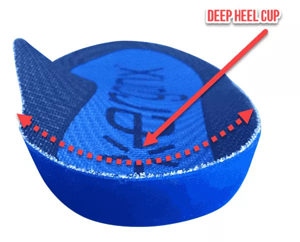 The foot has a fatty pad under the heel that helps with shock absorption and cushioning. If we can keep the fatty pad contained under the heel it will enhance the shock absorption capacity of the foot. This helps to slow the forces applied to the feet and improve the ovall foot position and comfort.