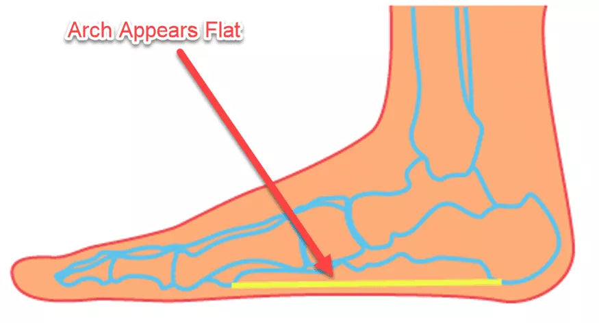 The foot often over pronates and gives the appearance of a flat foot. When the arches drop they are referred to as fallen arches.
