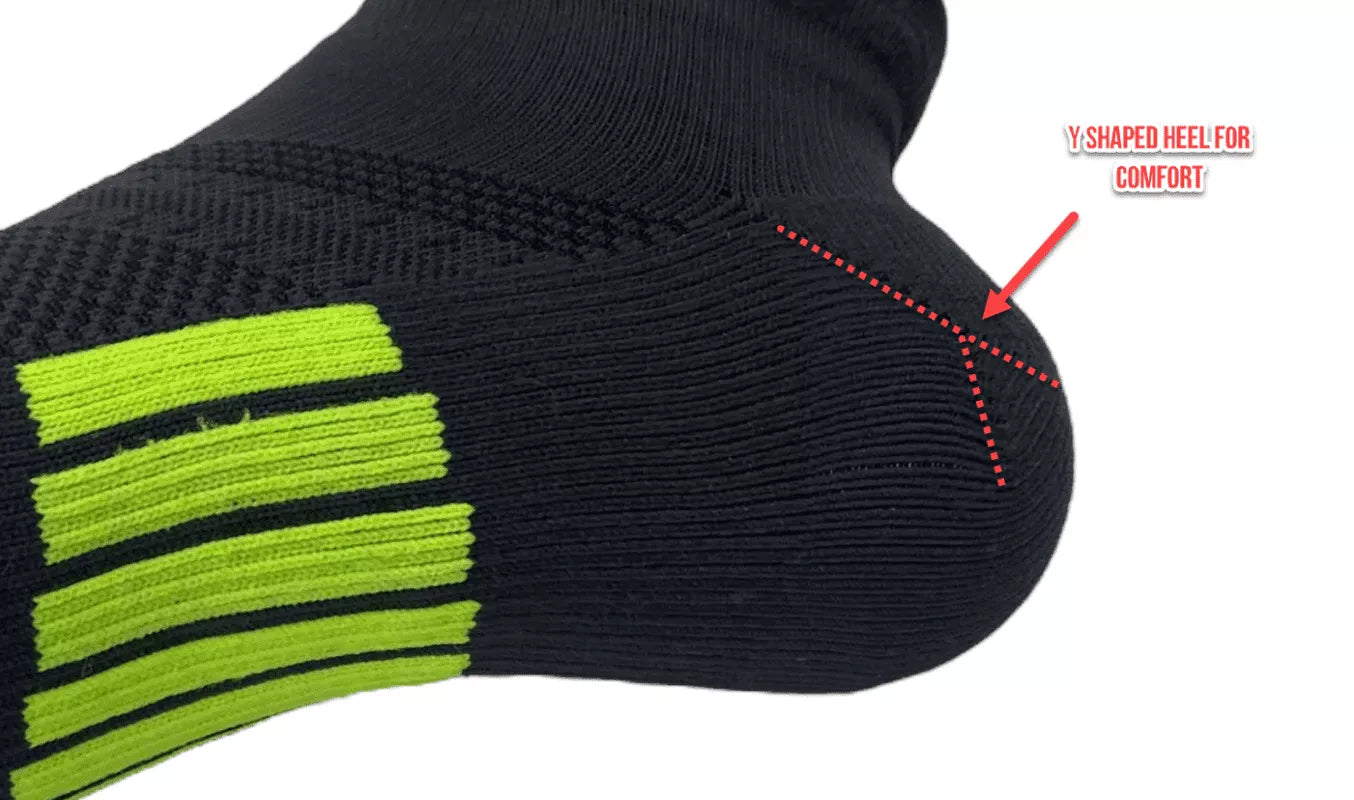 Y-shaped heel: The Y-shaped heel is designed to match the natural curve of your heel, providing a better fit and reducing the risk of slipping or bunching. This helps to prevent blisters and chafing that can occur when socks don’t fit properly.